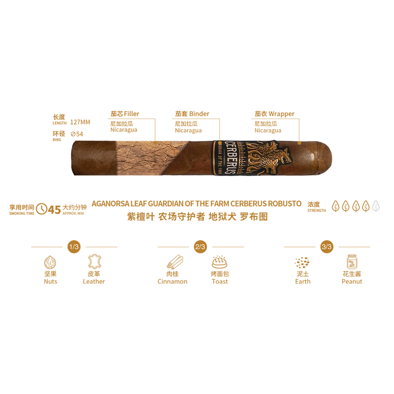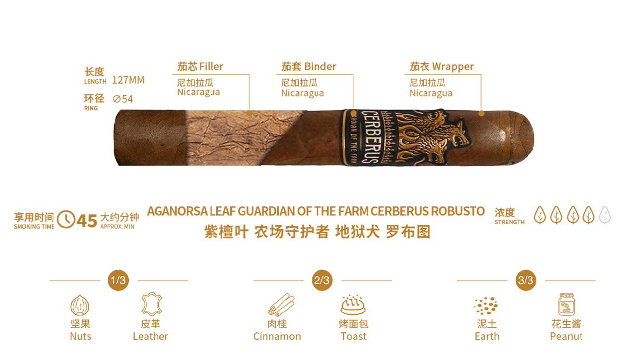 Aganorsa Leaf Guardian Of The Farm Cerberus Robusto 紫檀叶 农场守护者 地狱犬 罗布图